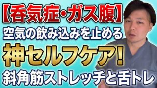 慢性的なガス腹・呑気症・機能性ディスペプシアにお悩みの方へ。25年以上の臨床経験を持つ鍼灸師が、横隔膜の緊張と舌の位置に着目した本当に効くセルフケア2つを解説します。